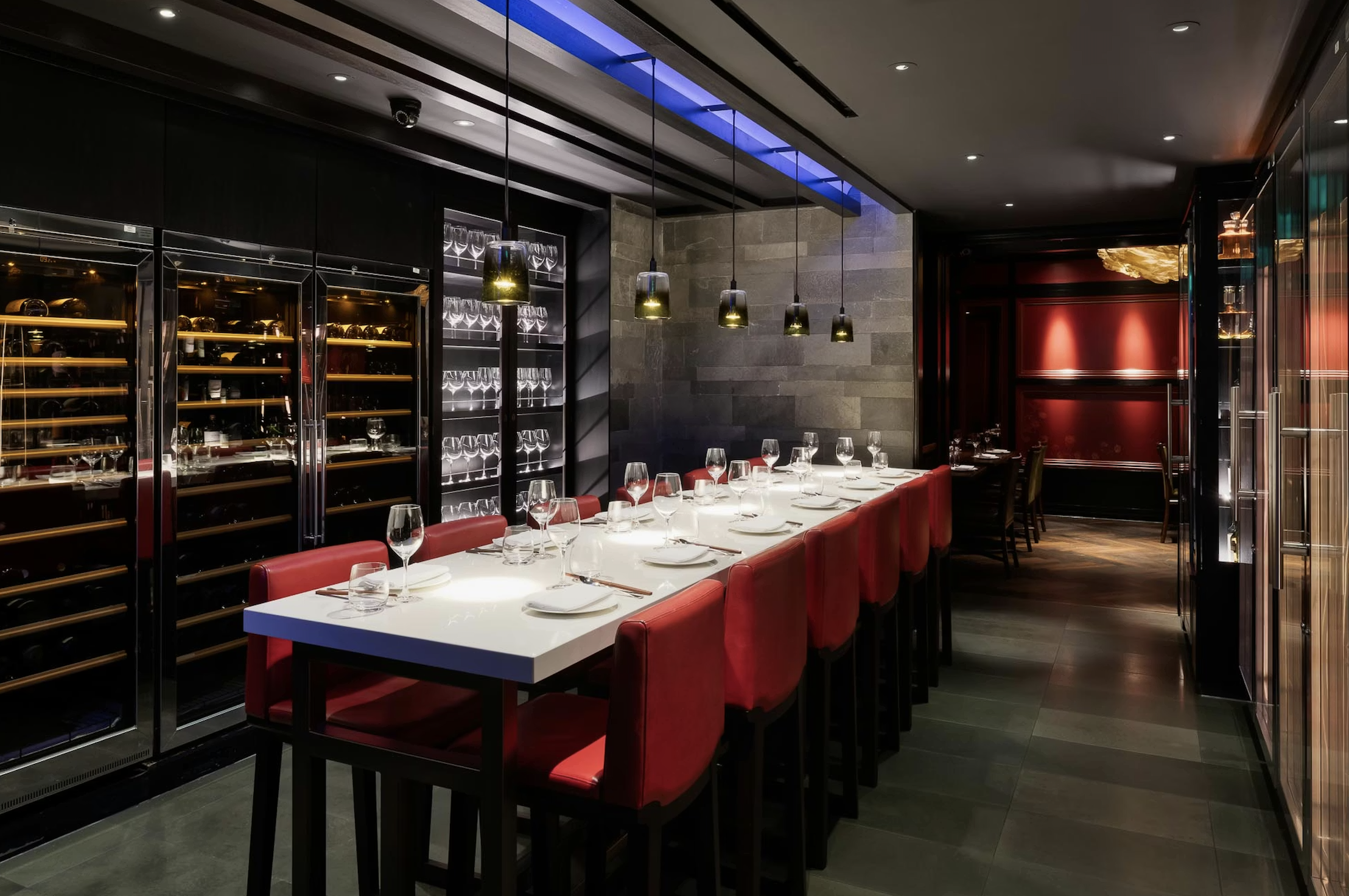 A distinctive semi-private dining experience set against the backdrop of Hakkasan’s wine collection and wine ware.